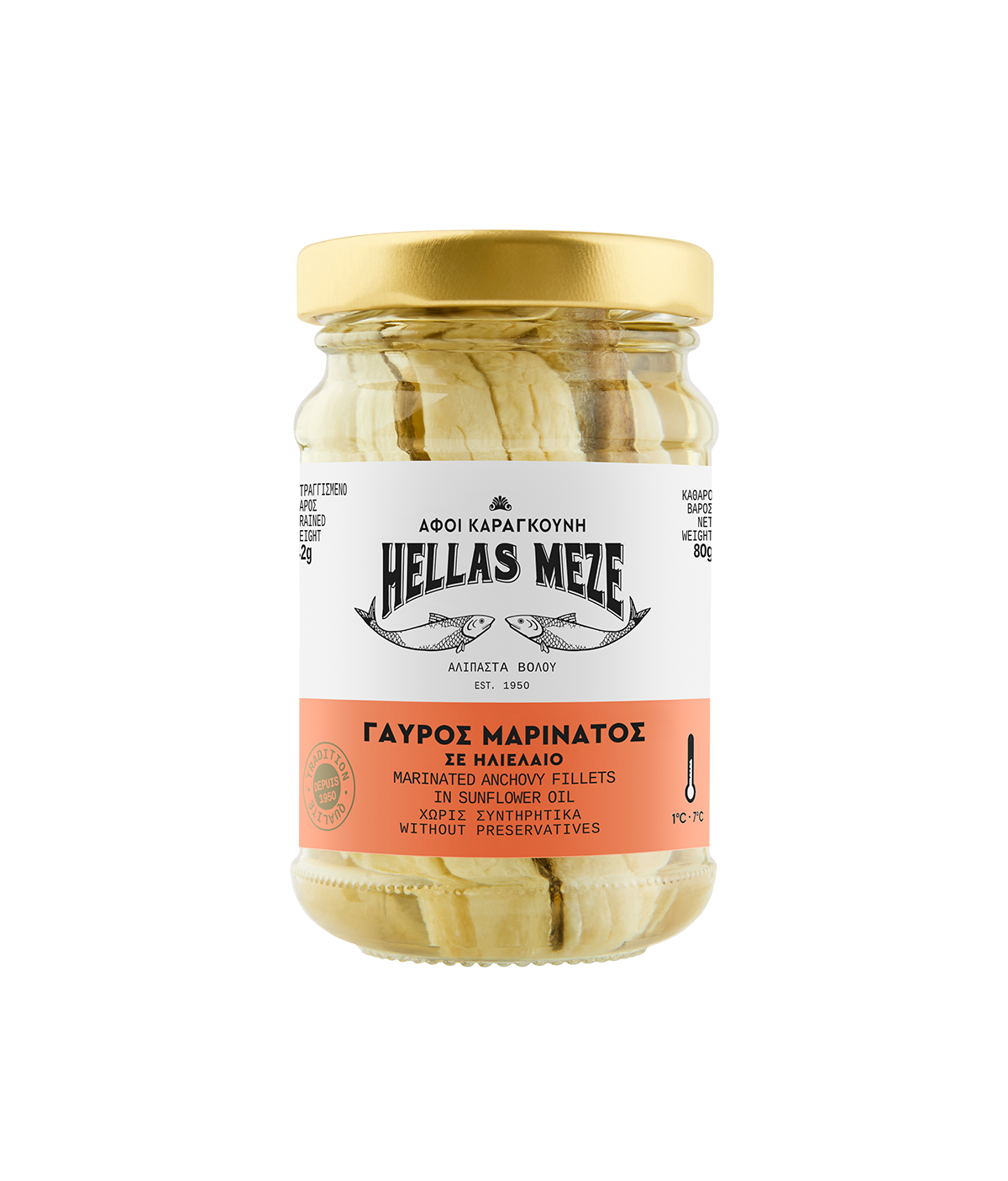 Ο αγαπημένος μας καλοκαιρινός μεζές τώρα και σε βαζάκι 80γρ. Φιλέτα γαύρου, που καθαρίζονται στο χέρι, και μαρινάρονται με ξύδι άριστης ποιότητας, διατηρούνται σε ηλιέλαιο χωρίς συντηρητικά.