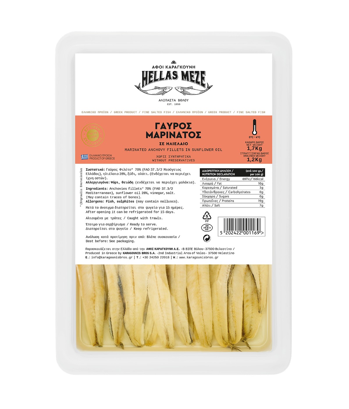 Αγαπημένος καλοκαιρινός μεζές, φιλέτα γαύρου, που καθαρίζονται στο χέρι, και μαρινάρονται με ξύδι άριστης ποιότητας, διατηρούνται σε ηλιέλαιο χωρίς συντηρητικά.