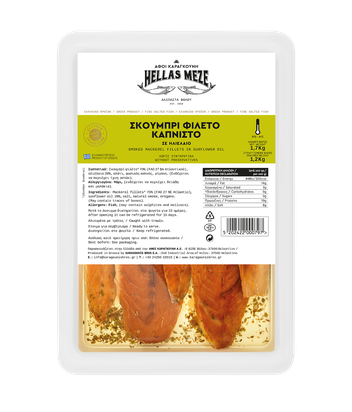 Δεν ανήκει τυχαία στους πέντε κορυφαίους ουζομεζέδες. Καπνιστά φιλέτα από σκουμπρί, μαριναρισμένα σε ξύδι συνθέτουν τον απόλυτο μεζέ για τα τραπέζια σας. Διατηρείται σε ηλιέλαιο εξαιρετικής ποιότητας, χωρίς συντηρητικά, έτοιμο για σερβίρισμα.