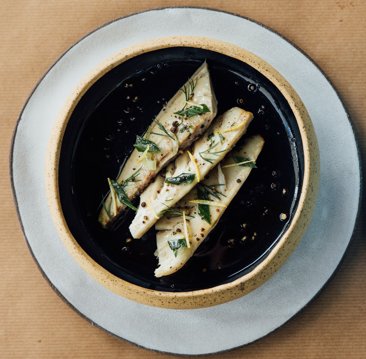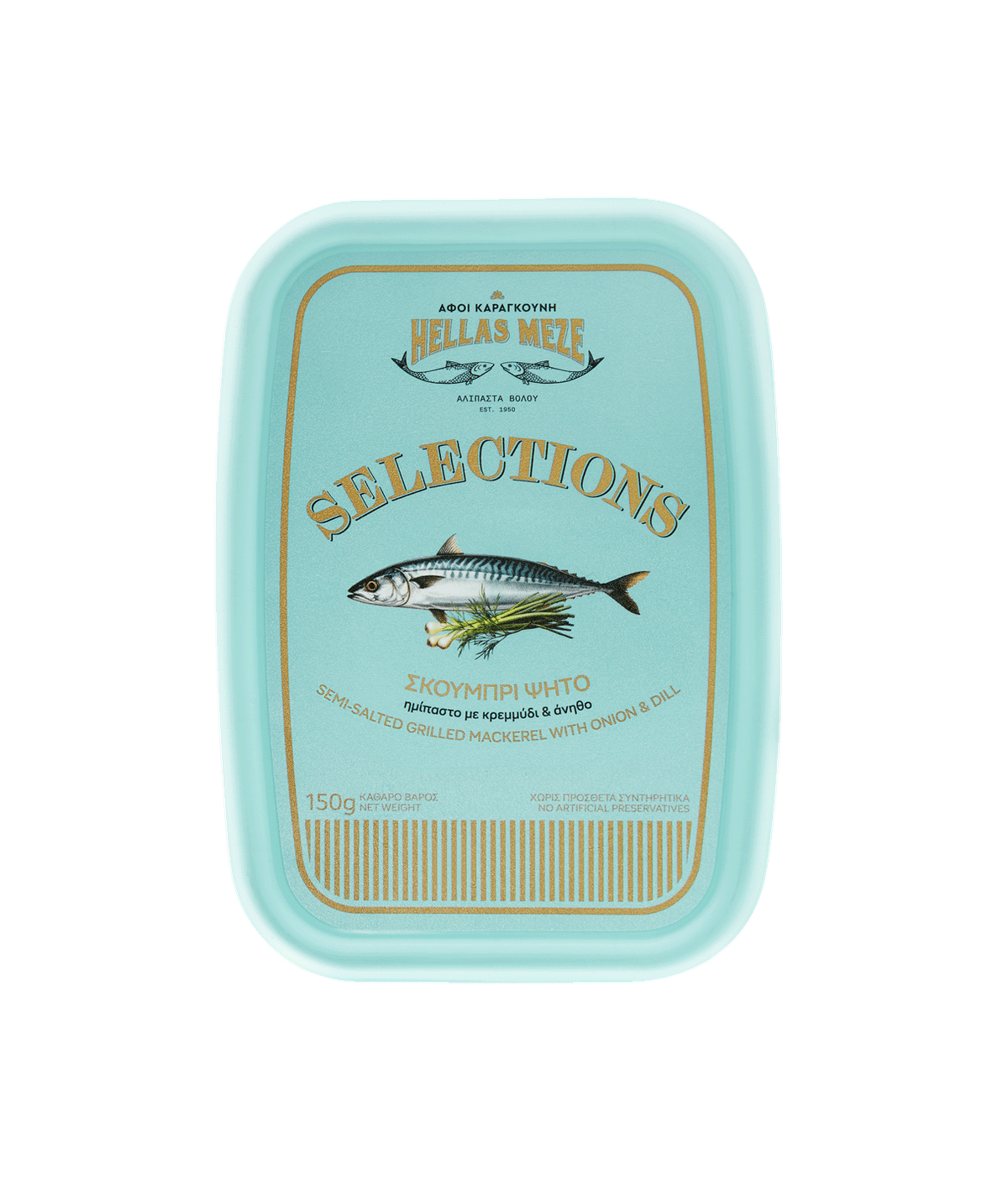 • Semi Salted Grilled mackerel with onion and dill 150γρ